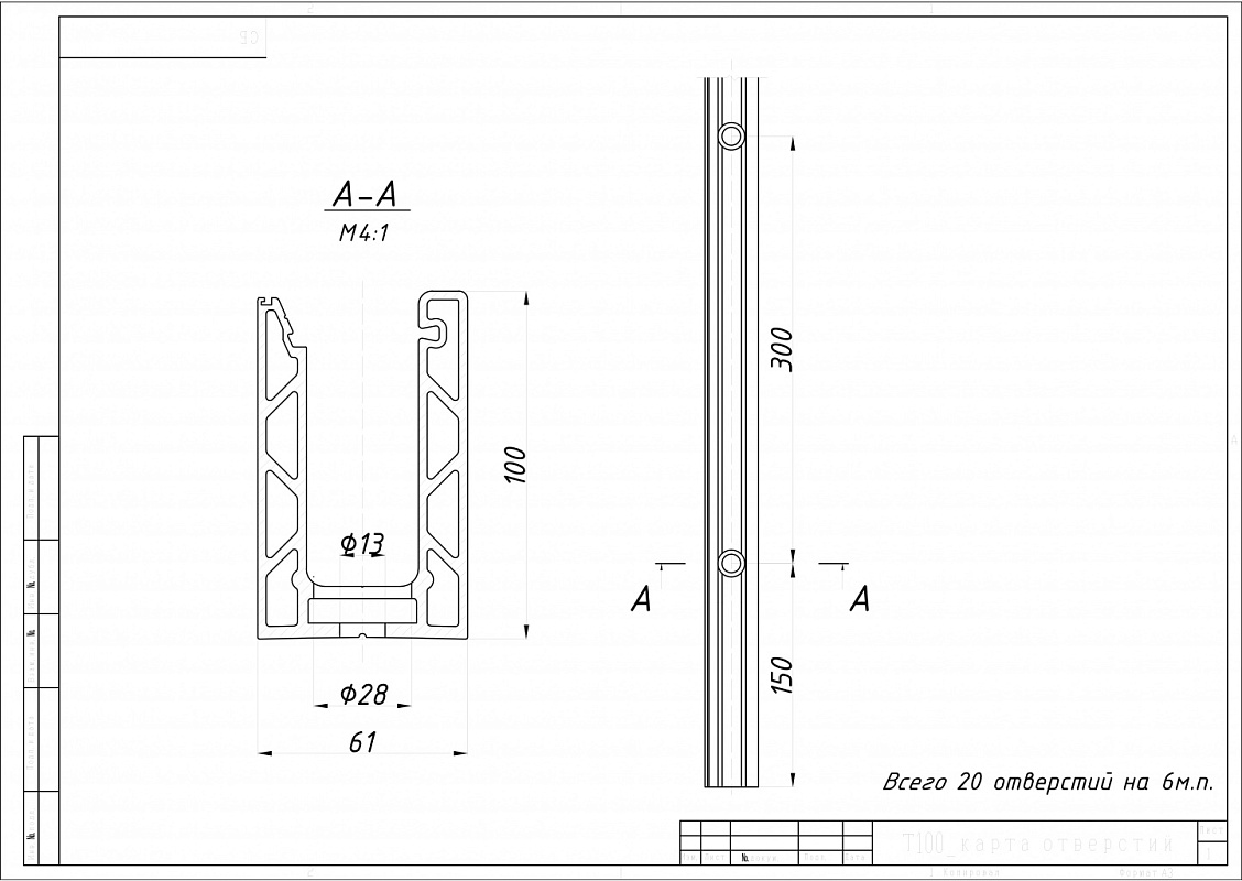 В Данной модификации профиля предусмотрены крепежные отверстия.