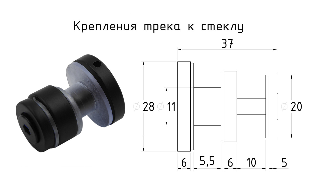 Крепление трека 30х10 к стеклу, AISI 304 черный t449 BL купить в Краснодаре