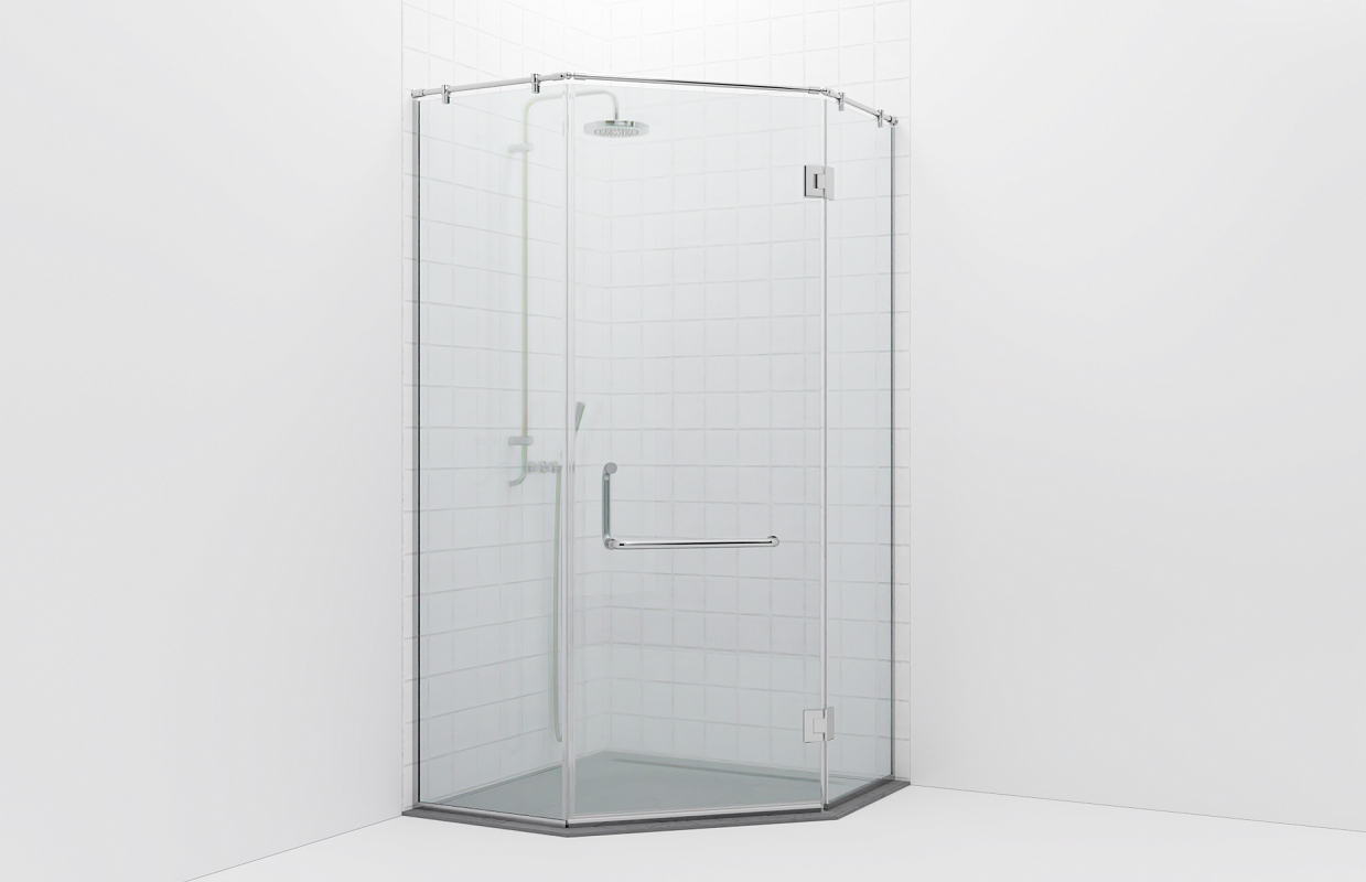 Предназначен для монтажа трапециевидной душевой перегородки, угловой, на профиле, с распашной дверью.