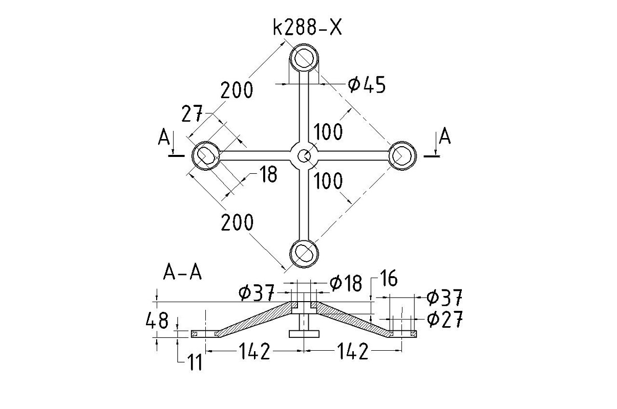 Спайдер-200 мм X-образный 4х26х38, 1х18х36/40 мм, нагрузки: 1кН, 2кН (AISI 304) k288-X