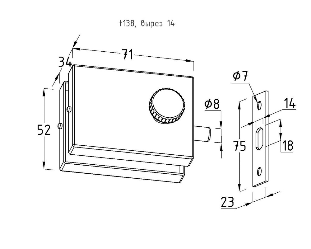 Защелка горизонтального типа включает в себя ответную часть для стены.
