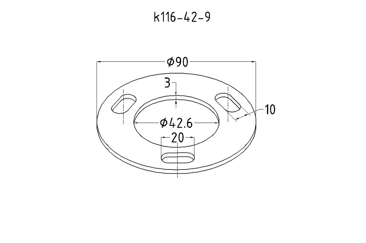 Фланец стойки 42/90 х 3 мм #200 3 отв х М10 х 20 черный металл k116-42-9