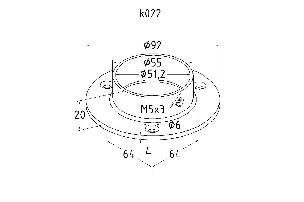 Фланец для трубы Ø50.8 мм, литой, полированный под 3 самореза 4.8 мм (AISI 304) k022