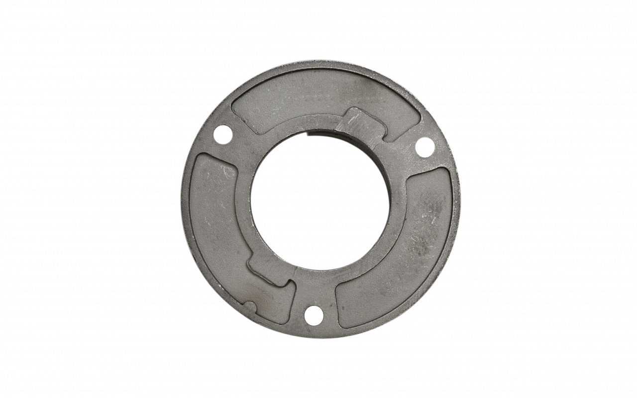 Фланец с тремя отверстиями для трубы с пазом диаметром 48.3 мм. Деталь литая, полированная. Марка стали - AISI 304