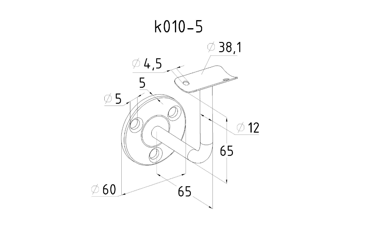 Пристенок с ложементом под Ø38.1 мм, полированный (AISI 304) k010-5