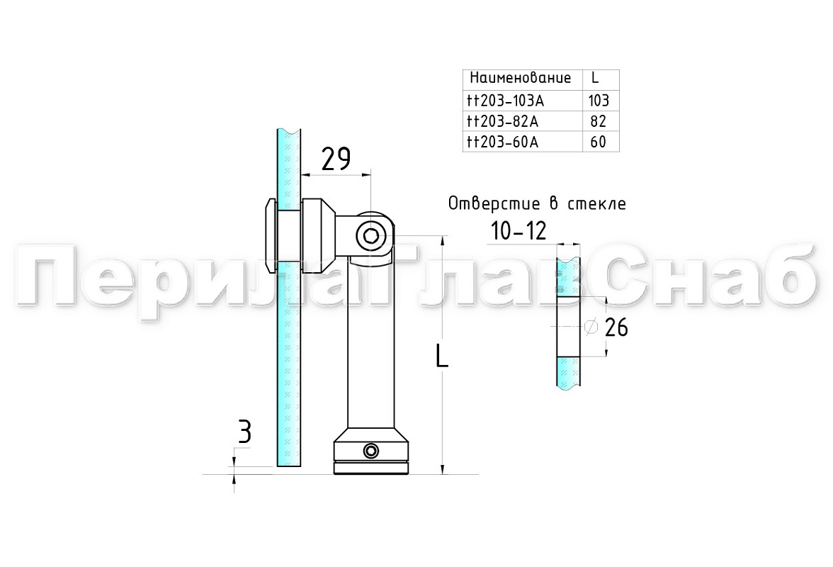 Крепление стекло-стена, штанга 103 мм, без зенковки tt203-103A SSS