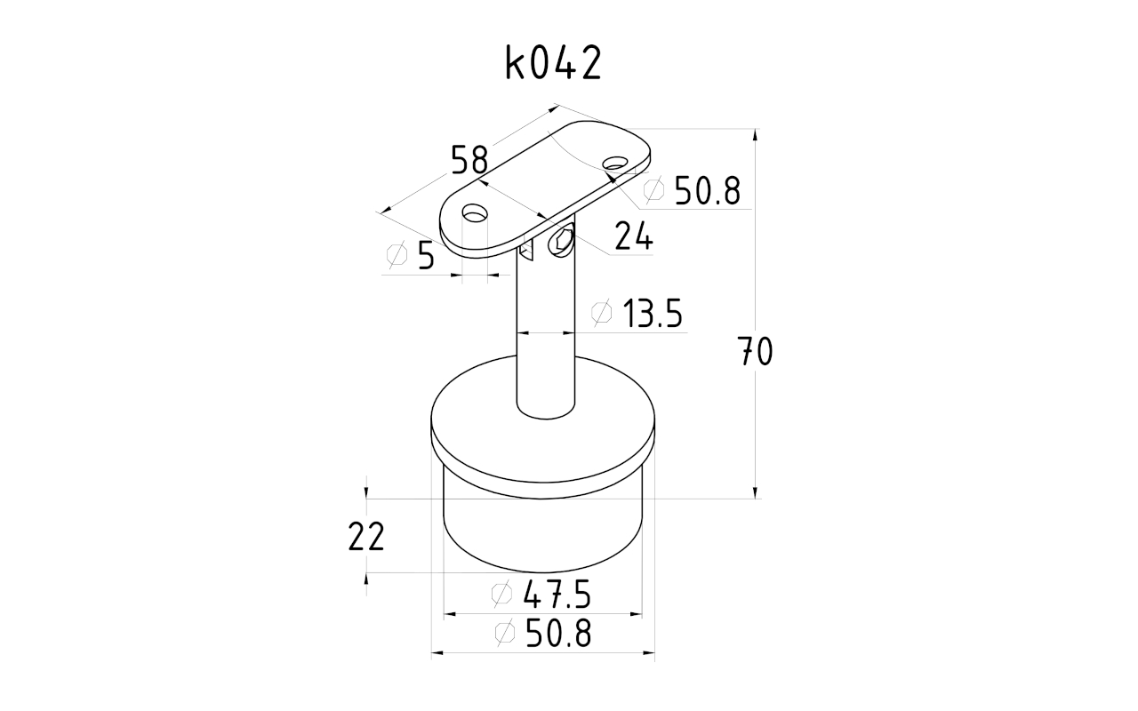 Наконечник палец на стойку Ø50.8х1.5 мм с регулируемым ложементом под поручень Ø50.8 мм, литой, полированный, нержавеющий AISI 304 k042