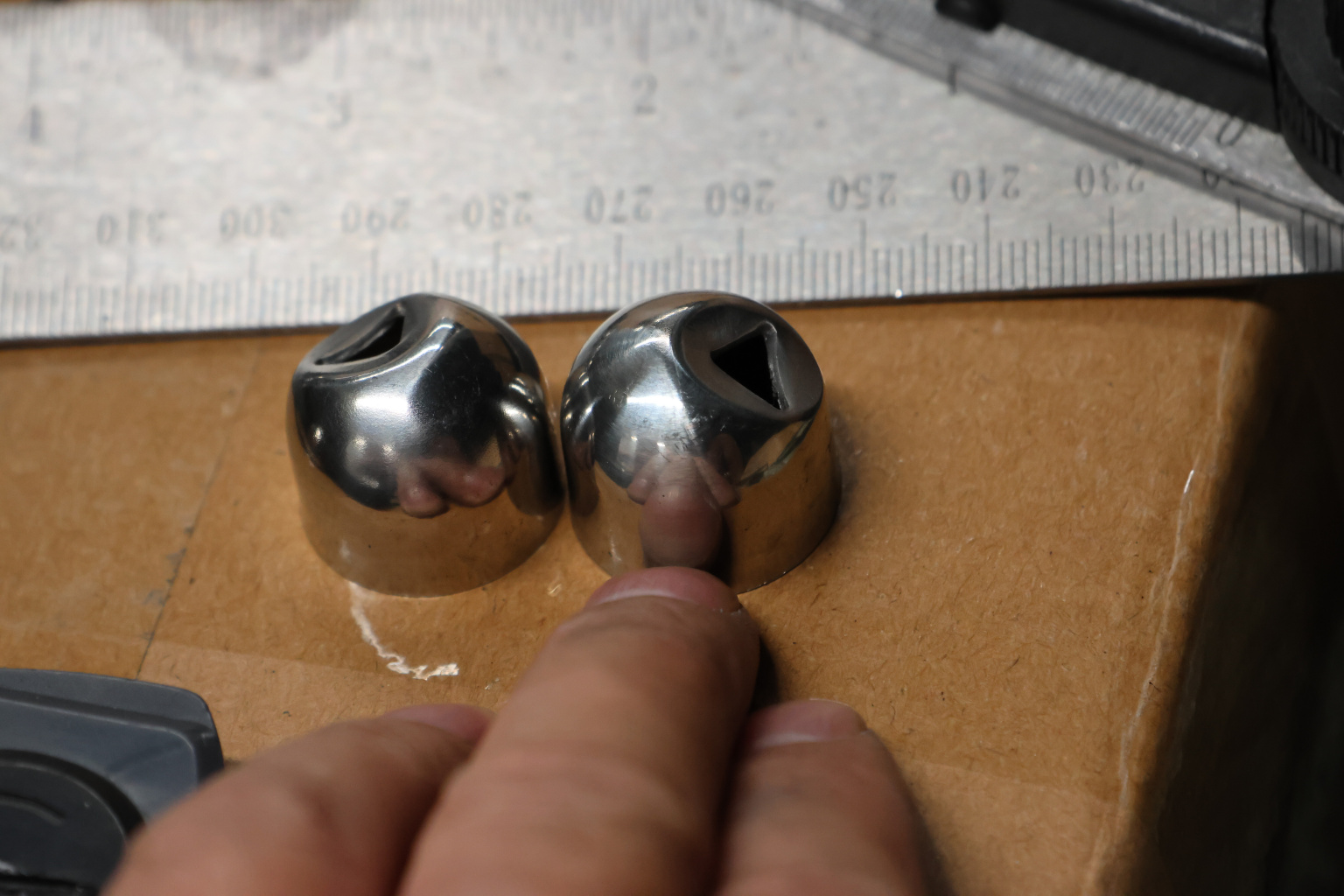 Наконечник штампованный (СПС) косой 30° на трубу Ø19 мм, для поручня Ø38.1-50.8 мм. Деталь полированная 400 Grit, нержавеющая. Марка стали - AISI 304