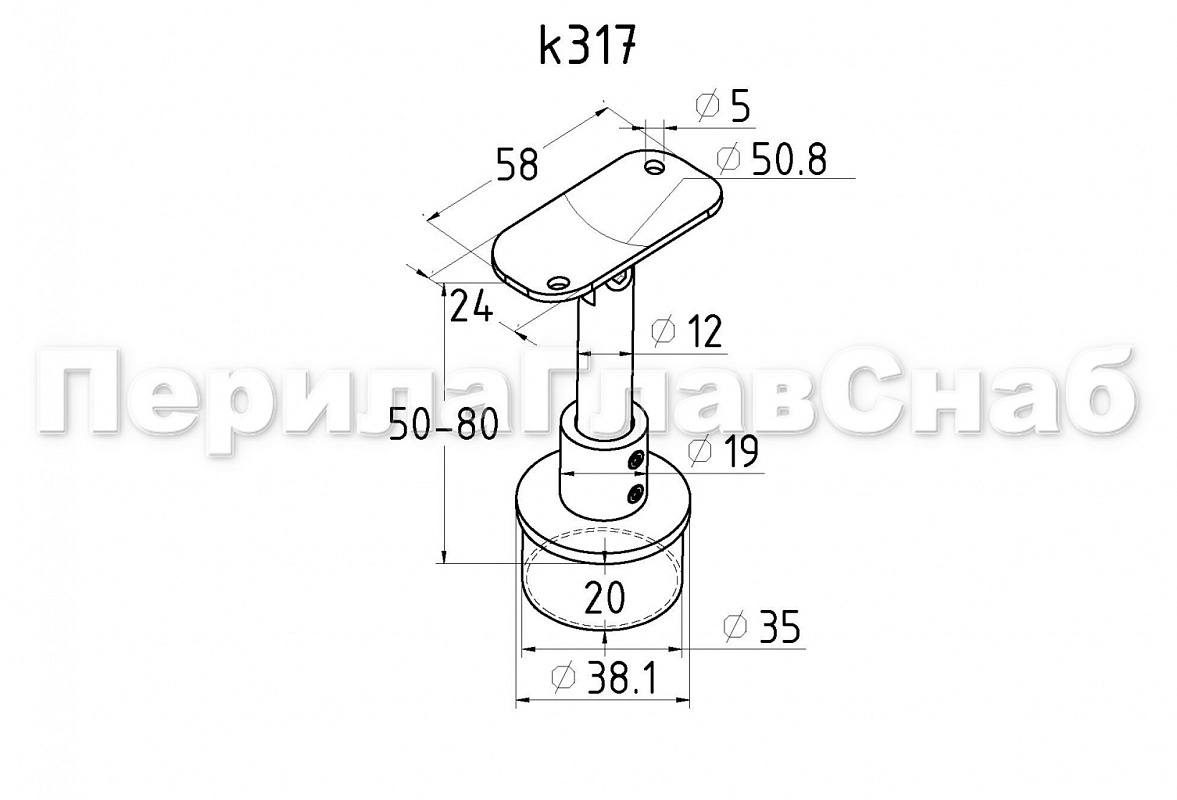 Если вы ни разу не устанавливали перила, то берите именно эту модель! Уникальность позиции заключается в том, что её можно регулировать по высоте и уставливать как на лестничных маршах, так и на горизонтальных поверхностях. Ложемент у данной модели идет с отверстиями под саморезы. Предназначен для стойки диаметром Ø38.1 мм (k819, k849) под поручень Ø50.8 мм. Можно крепить как на сварку, так и на специальный клей ( Ф1105, Ф1106, Ф1107).