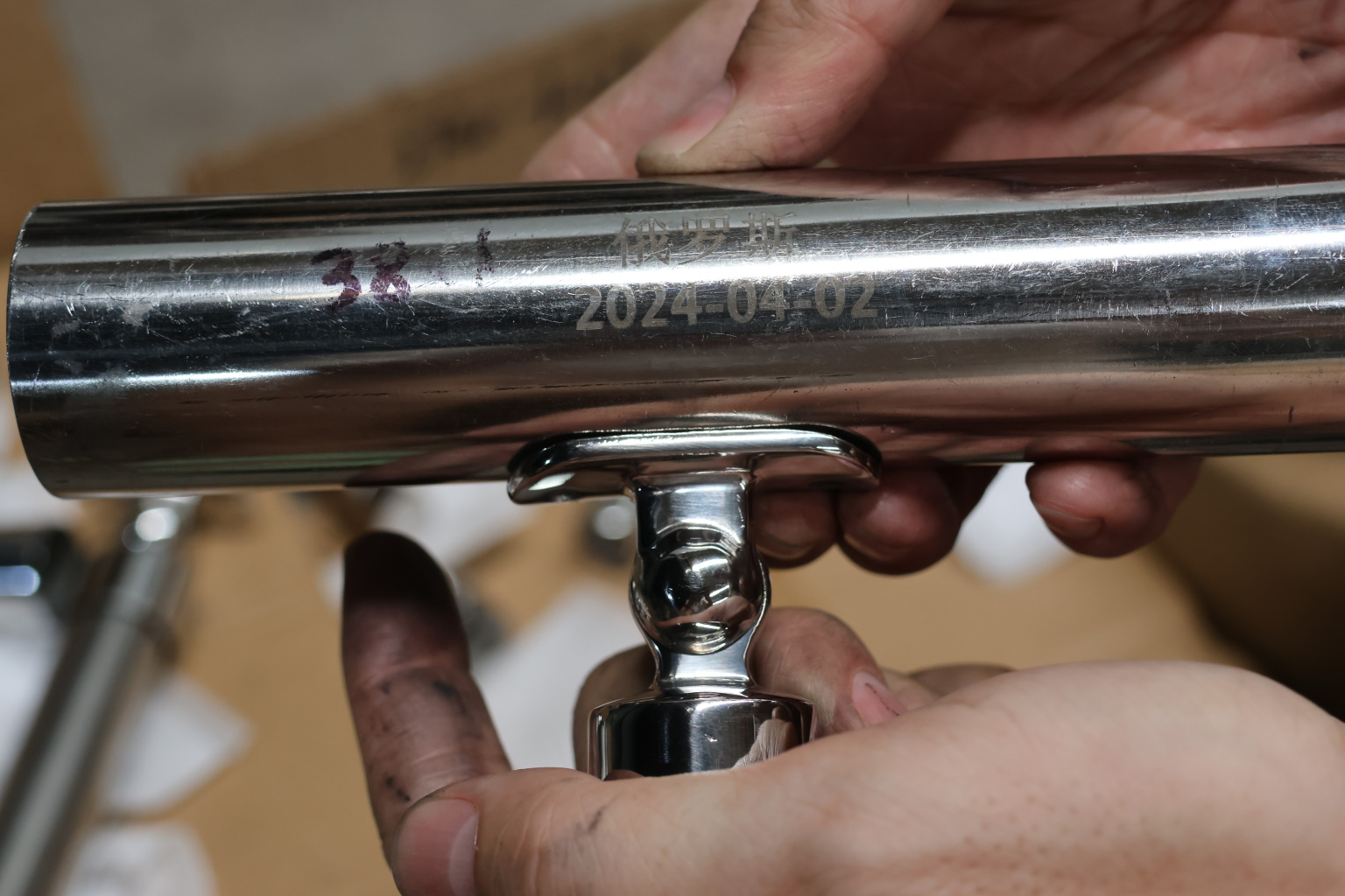 Наконечник наружный на стойку Ø25.4 мм, с регулируемым ложементом под трубу Ø38.1 мм, литой, полированный, нержавеющий AISI 304, k326