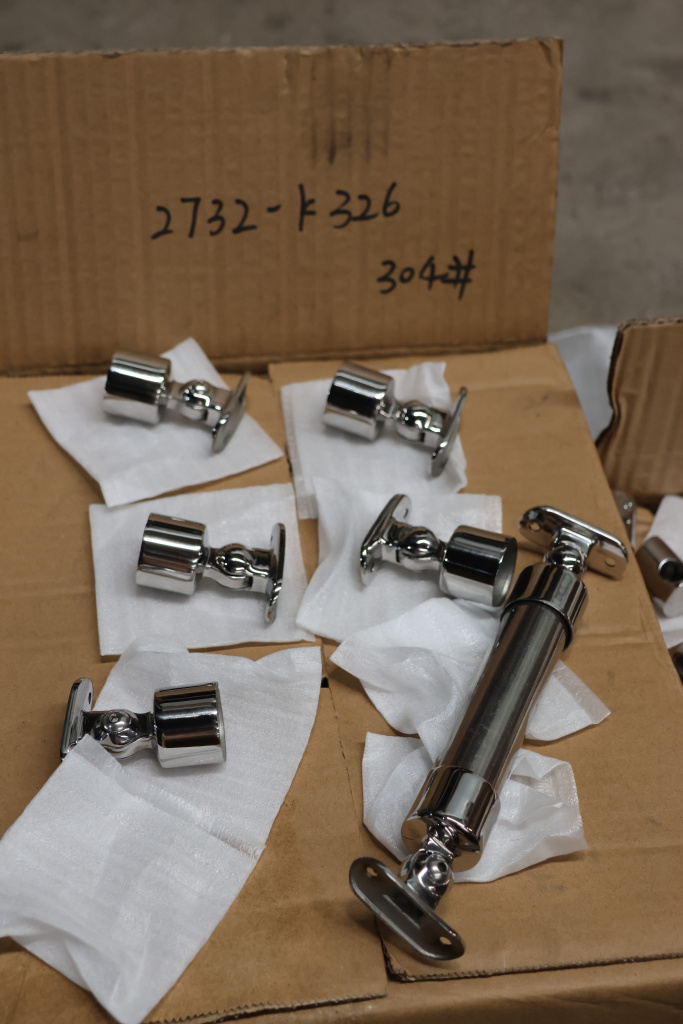k326 наконечник на стойку шаровый, наружный Ø25.4 мм, с ложементом под поручень Ø38.1 мм, шарнирный, регулируемый, полированный (aisi 304)