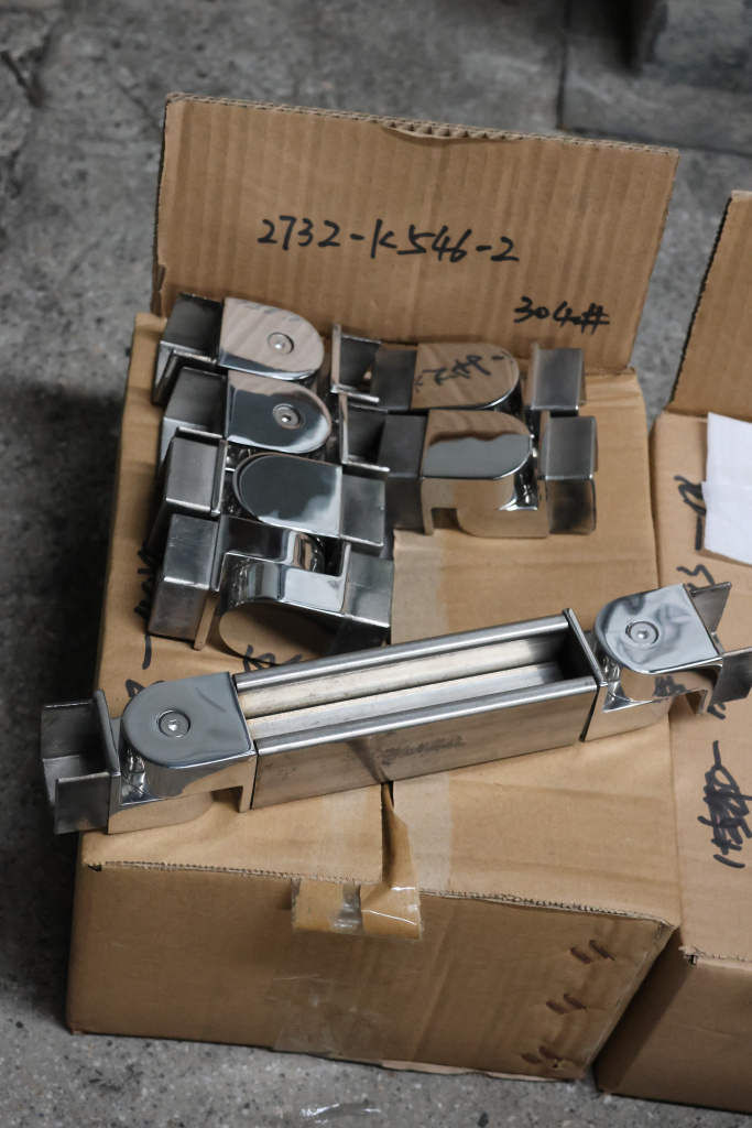 Отвод для поручня с пазом 40х40 мм, шарнирный, полир., (AISI 304) k546-2