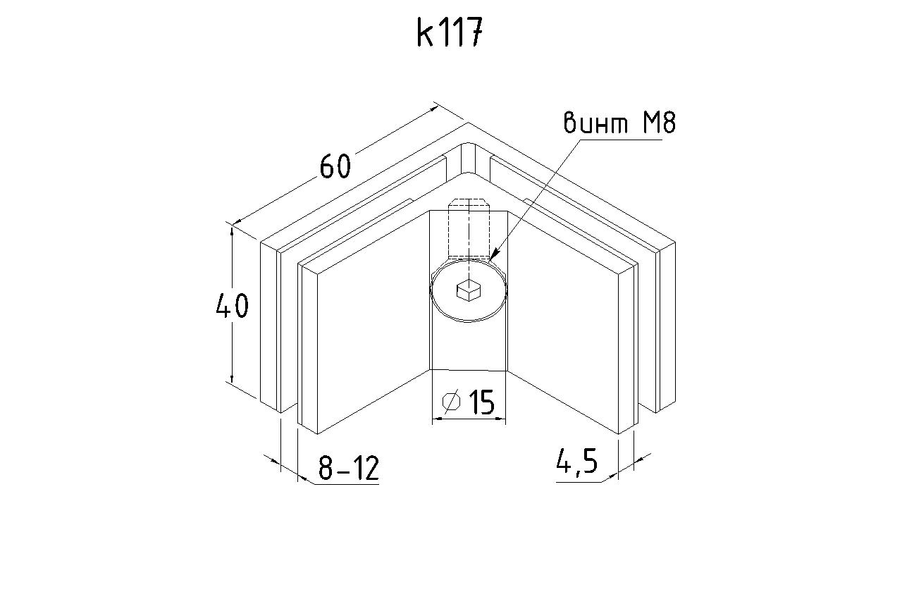 Соединитель стекол, угловой, 60х40, нержавеющая сталь AISI 304, полированная k117