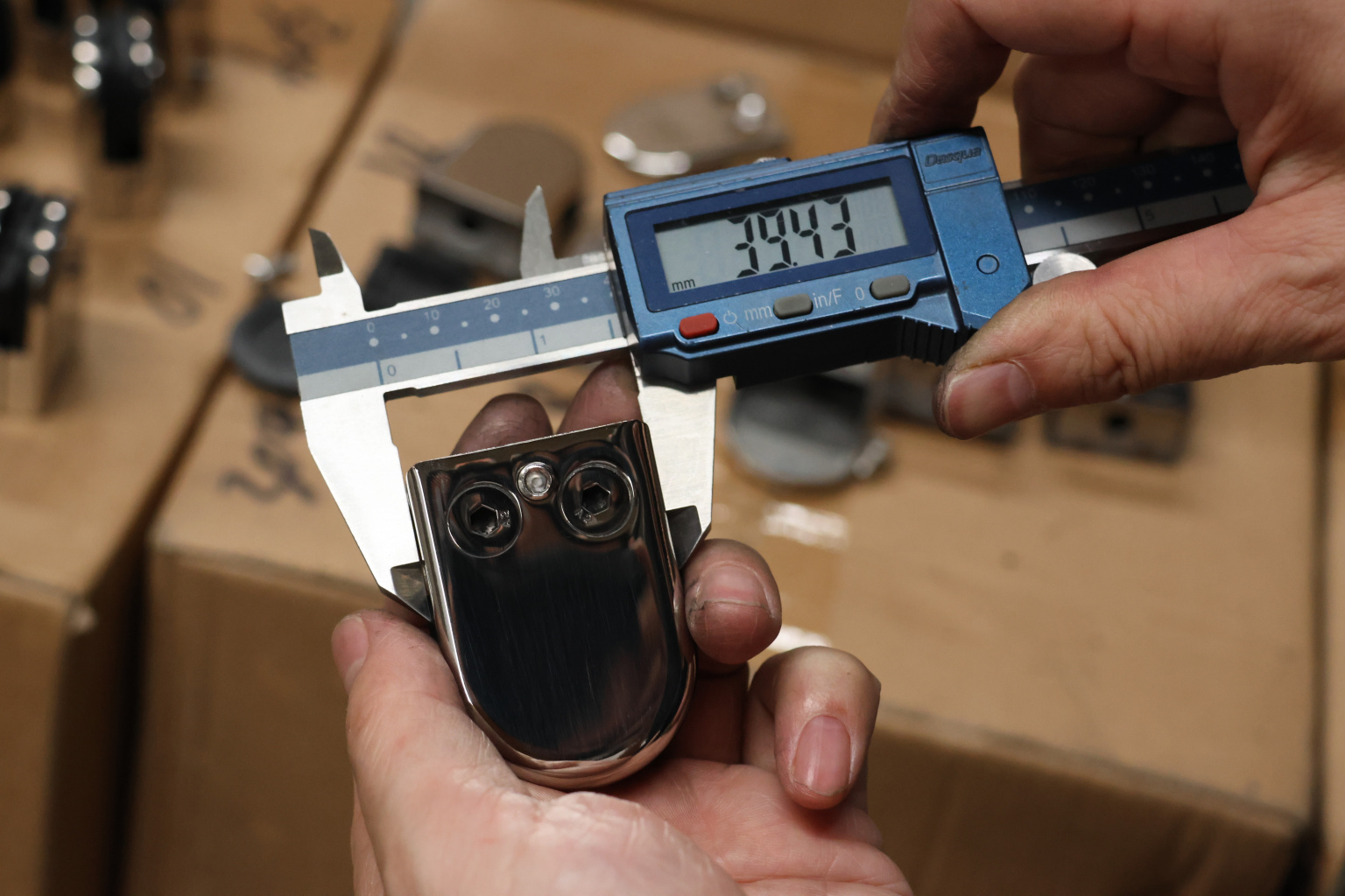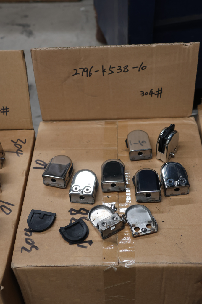 k538-10 стеклодержатель штампованный под стекло 10 мм, под стойку Ø38.1 мм (39х24х55), полированный, AISI 304