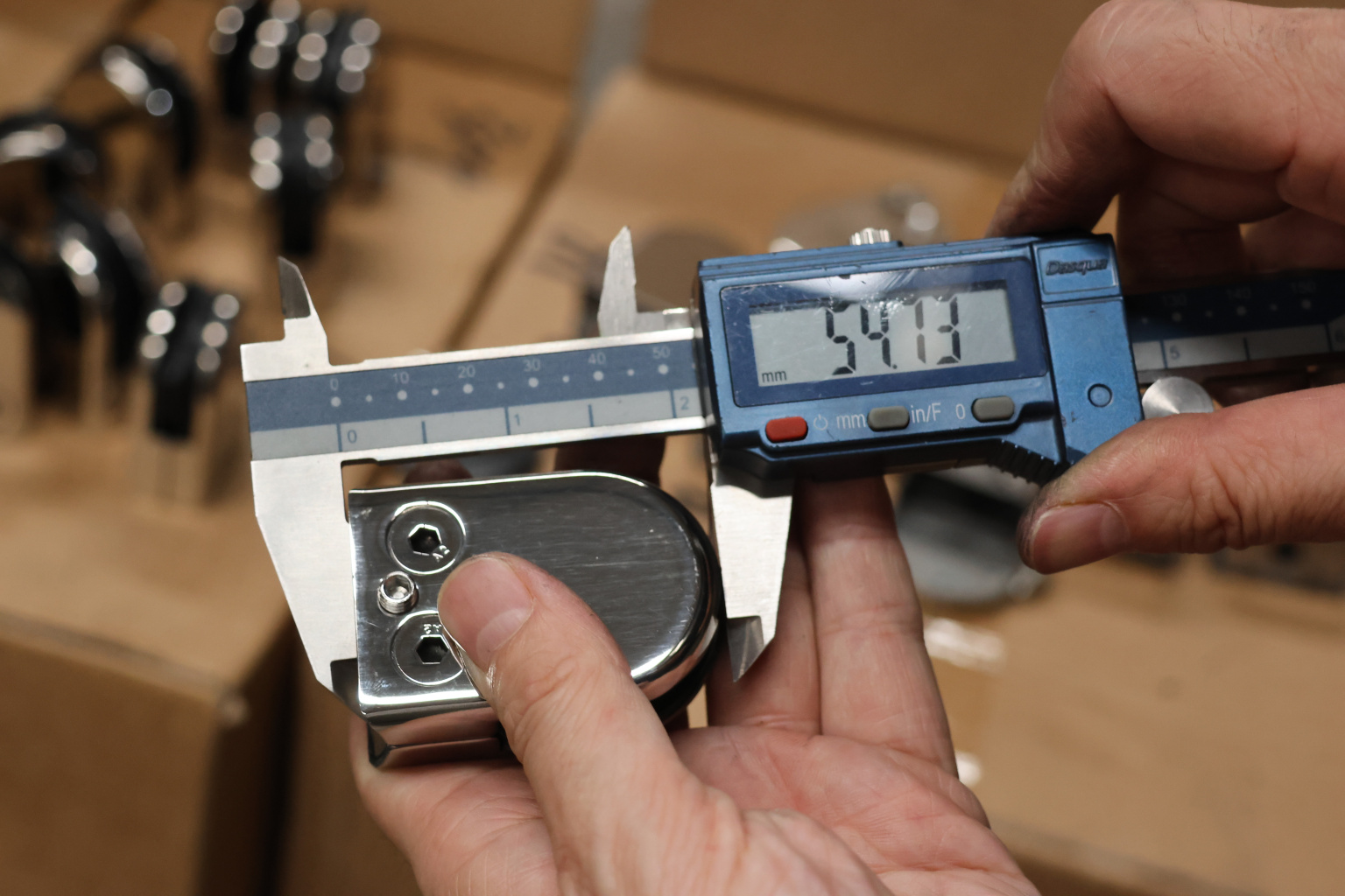 Стеклодержатель штампованный под стекло 10 мм (5+5 мм), под стойку Ø38.1 мм (39х24х55), полированный (AISI 304) k538-10