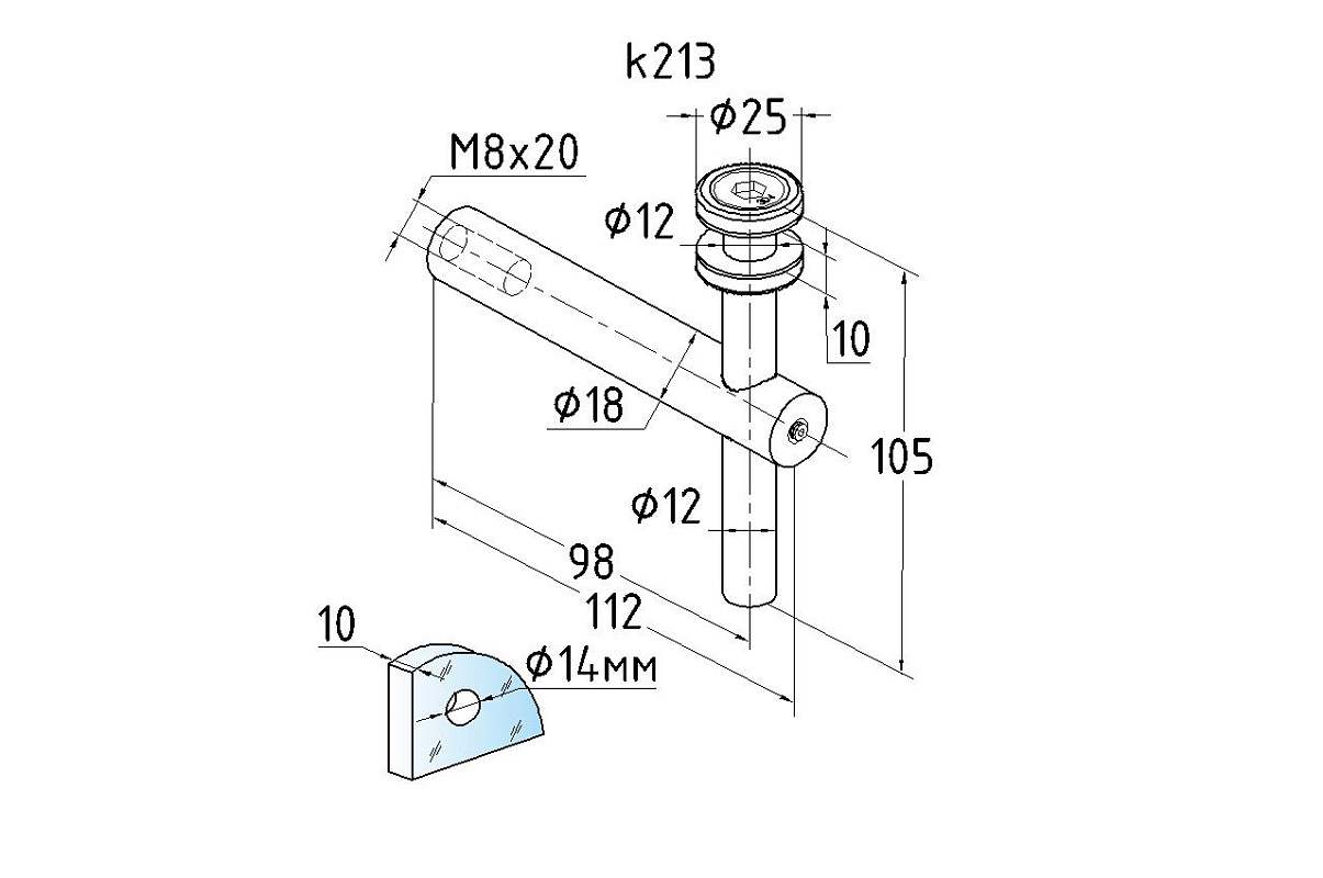 Если требуется установить стекло на шлифованных стойках, в этом случае нужно использовать аналогичный стеклодержатель, но в шлифованном исполнении k214