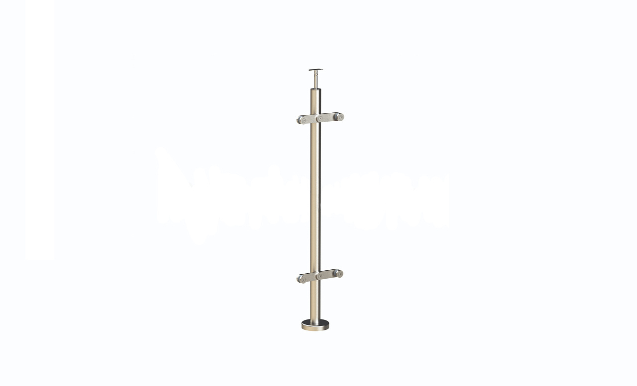 Стойка круглая Ø38.1: 2 пластинчатых стеклодержателя, полированная, высота 950 мм (AISI 304) k729