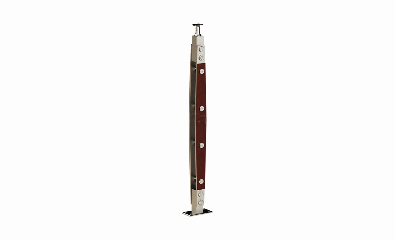 Готовая стойка Ø38,1х950 мм деревянная, со вставками из нержавеющей стали 2х100 мм с 2 стеклодержателями k741-2-R купить в Краснодаре