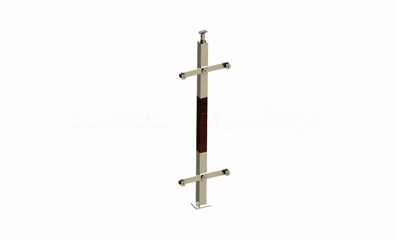 Готовая стойка 40х40х950 мм, деревянная, со вставками из нержавеющей стали 2х100 мм с 2 зажимными стеклодержателями k740-4-R купить в Краснодаре