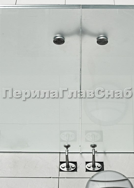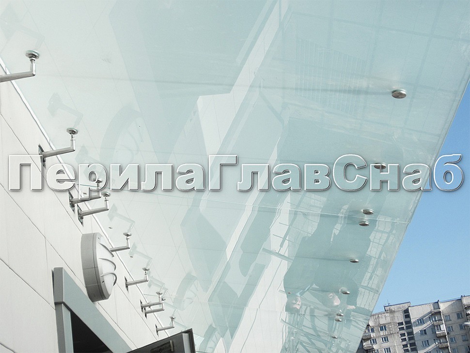 Цельностеклянный козырек с креплениями из нержавеющей стали.