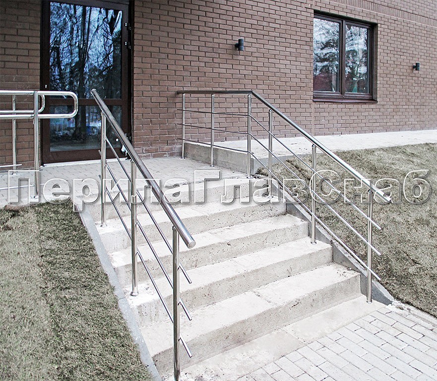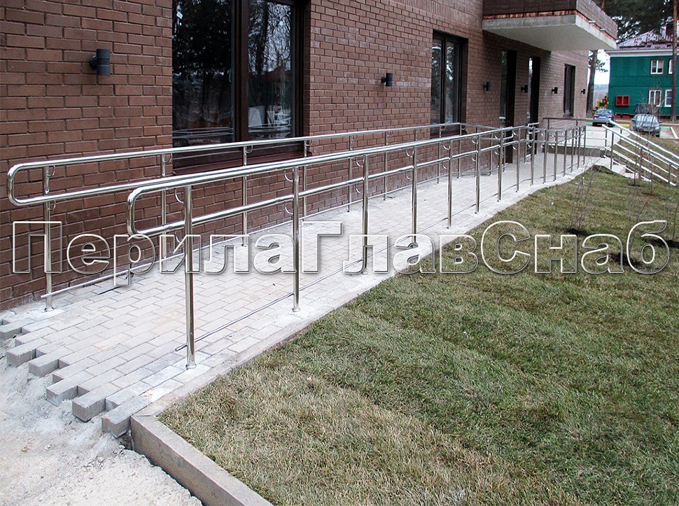 Ограждение с двойным поручнем 50-й трубы. Выполнены специально для удобства пользования людям с ограниченными возможностями передвижения.
