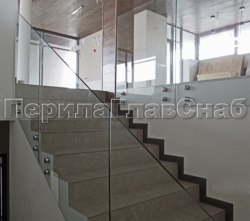 Крепление в торец цельностеклянного ограждения для лестницы.