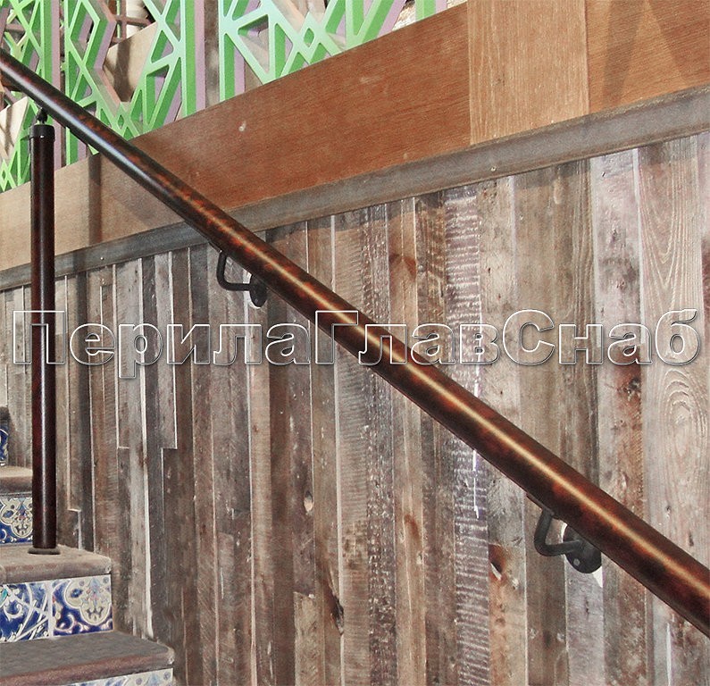 Ограждение из нержавеющей стали с поручнем и креплением через полусферический наконечник.
