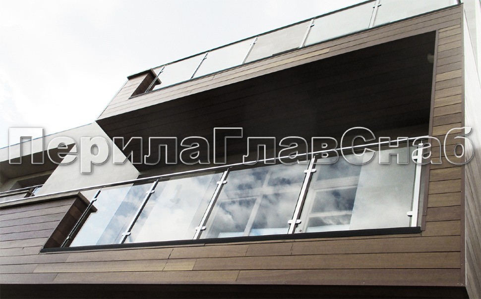 Ограждения со стеклянными вставками на балконе дома.