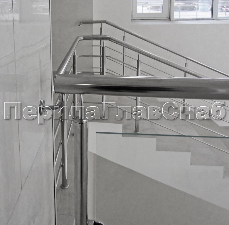 Поручень 50-й требы из нержавеющей стали завязан на поворотах.