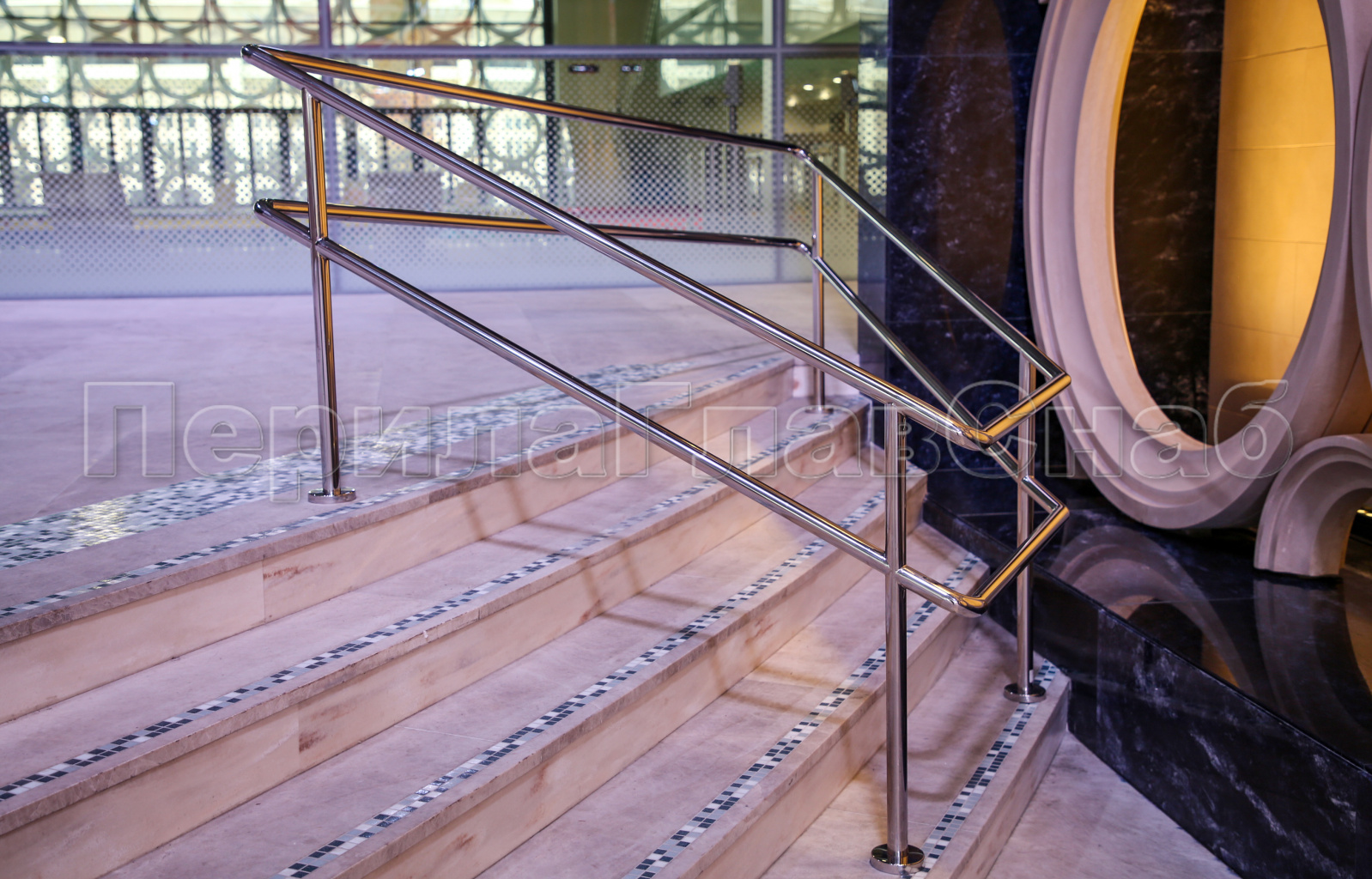 Для придания плавности линий и отсутствия острых углов поручня, были отдельно изготовлены отводы с разными радиусами, что сказалось на сложности изготовления и монтажа поручней. Все швы поручня были обварены по кругу, тщательно зачищены и заполированы.