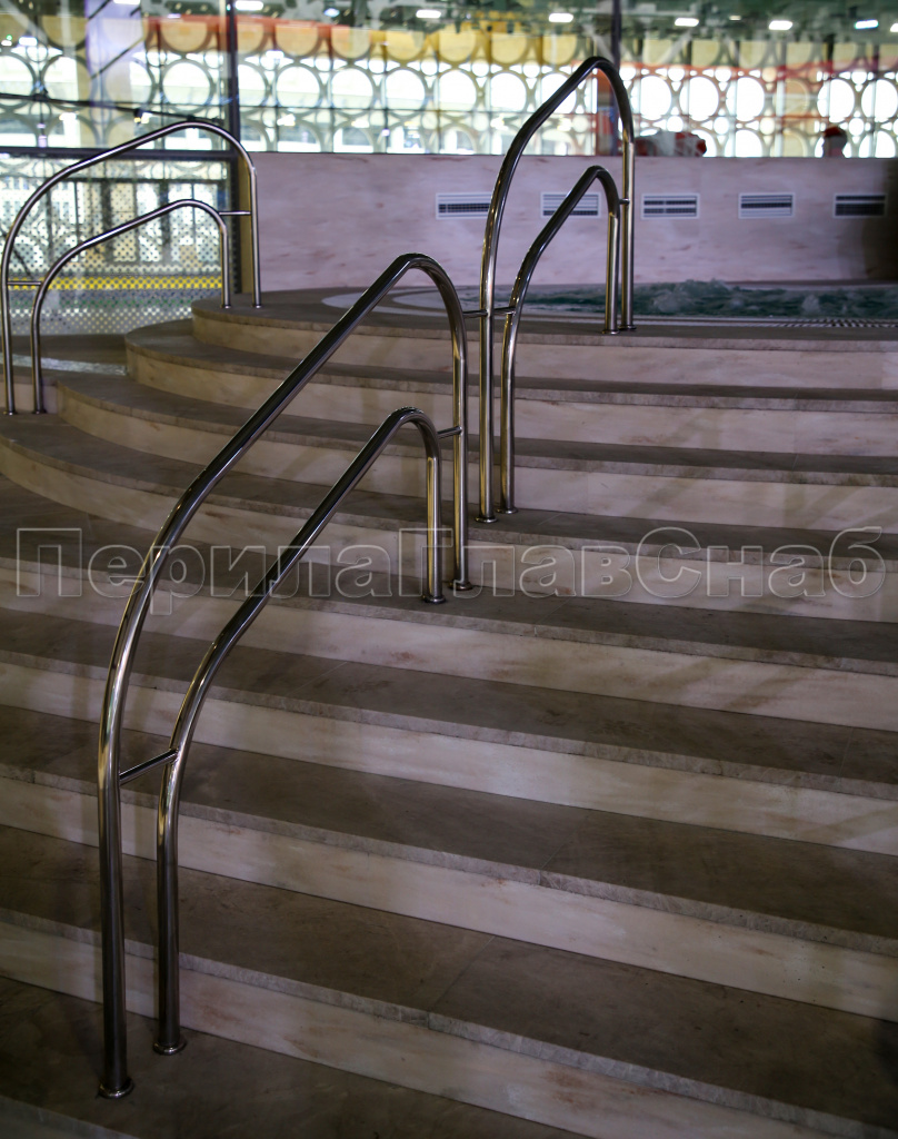 1) Поручни и ограждения должны быть выполнены из высоко коррозионно-устойчивого материала, так как контактируют с агрессивной средой-хлорированной водой.