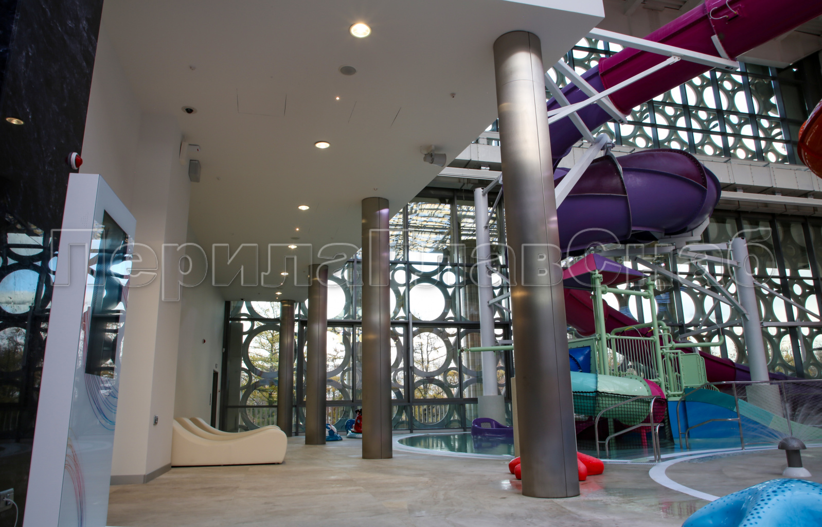 В конце 2019 года, завершилось строительство уникального объекта –Дворца водных видов спорта в Лужниках, расположенного в центре Москвы, около станции метро «Воробьевы горы». Завершающим этапом строительства стала установка нашей компанией «Перилаглавснаб» пятидесяти восьми поручней из нержавеющей стали в развлекательных бассейнах, а также облицовка восьмидесяти шести колон нержавеющим шлифованным листом, изготовления и монтажа колесо отбойников для защиты стен, колонн и интерьера. Основные и очень важные требования заказчика включали в себя :
