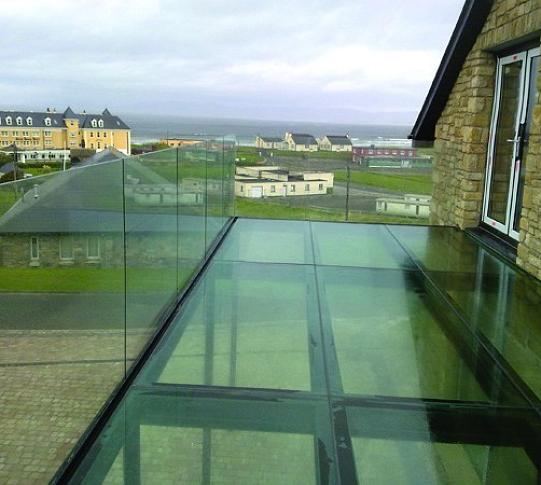 Для изготовления применяются многослойные стеклянные панели, соединенные по технологии триплекс. Это обеспечивает гарантию прочности, визуальной легкости и надежности.